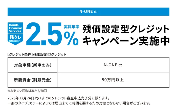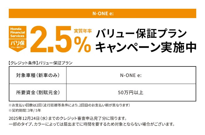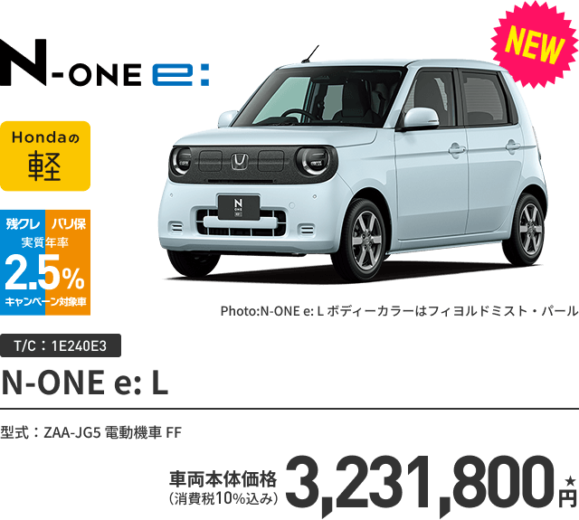 N-ONE e: L ボディーカラー/有料色 メーカーオプションなし〈実質年率2.5% 60回(5年)払い〉車両本体価格(消費税10%込み)3,231,800円★の場合