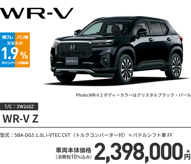 WR-V Z ボディーカラー/一般色 メーカーオプションなし〈実質年率1.9% 60回(5年)払い〉車両本体価格(消費税10%込み)2,398,000円★の場合